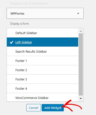 فرم موردنظر خود را از فهرست کشویی در تنظیمات ویجت انتخاب کنید. سپس روی ذخیره کلیک کنید.