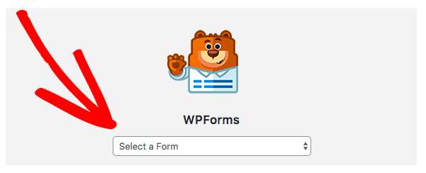 اکنون بلوک WPForms را در صفحه ویرایشگر مشاهده خواهید کرد. در مرحله بعد ، پیش بروید و فرم مورد نظر خود را از قسمت کشویی Select a Form انتخاب کنید.