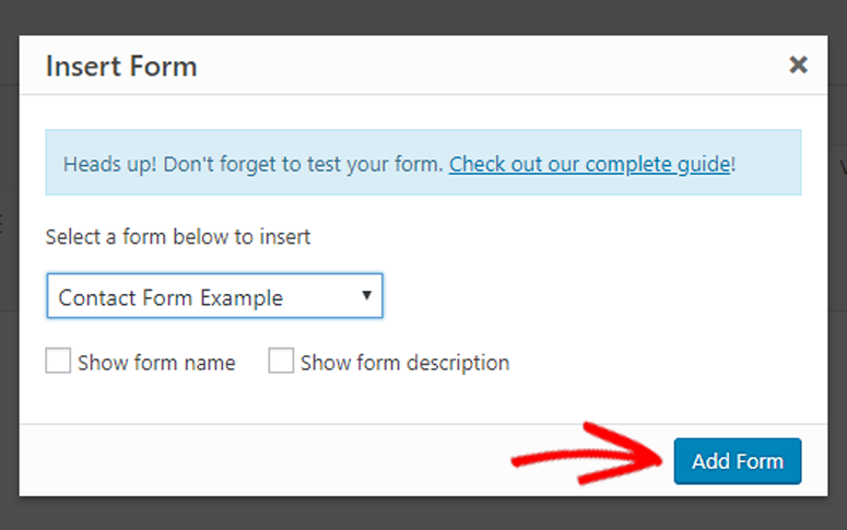 یک منو پاپ آپ ظاهر می شود. فرم مخاطبی را که ایجاد کرده اید از منوی کشویی انتخاب کنید. سپس بر روی Add Form کلیک کنید.