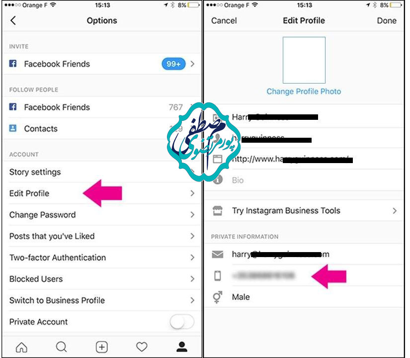 برای فعال کردن احراز هویت دو مرحله ای ، باید شماره تلفنی برای حساب اینستاگرام خود داشته باشید. اگر قبلاً شماره تلفنی اضافه نکرده اید ، روی « Edit Profile » ضربه بزنید و سپس روی آیکون تلفن در زیر « Private Information » ضربه بزنید.