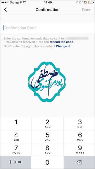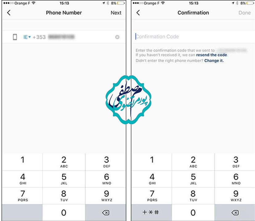 شماره تلفن خود را تایپ کنید و سپس روی ” Next ” ضربه بزنید. چند لحظه دیگر ، یک کد تأیید برای شما ارسال می شود. کد را در صفحه ” Confirmation” وارد کنید و سپس روی ” Done ” ضربه بزنید تا شماره تلفن را به حساب تان اضافه کنید.
