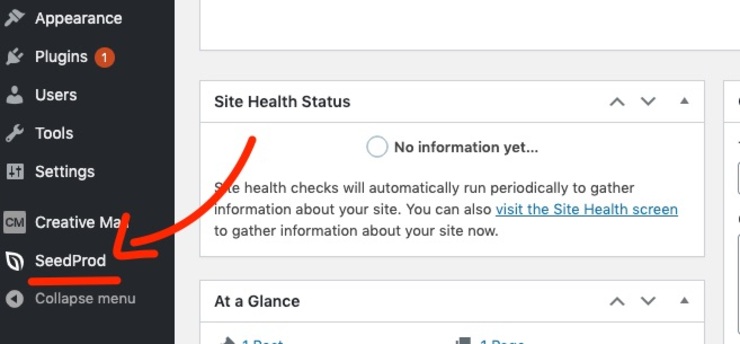 از داشبورد وردپرس خود، روی برگۀ SeedProd در نوار کناری سمت چپ کلیک کنید: